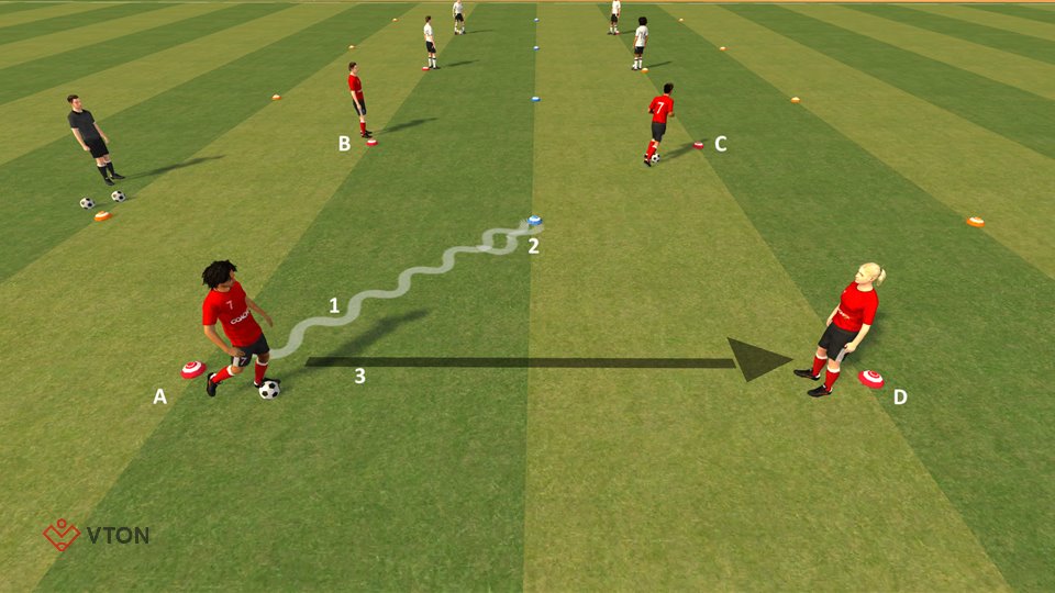 - Lukt het B om de pass te onderscheppen dan is A1 het nieuwe team verdedigers.